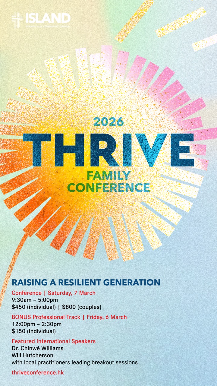 Thrive Family Conference is committed to equipping and empowering families and communities to grow in connection, hope, and holistic well‑being – grounded in God’s truth and the restorative work of Christ. This year’s theme explores how we can raise a resilient generation with hope, wisdom and strength in young people amid rising academic, social, and cultural pressures.